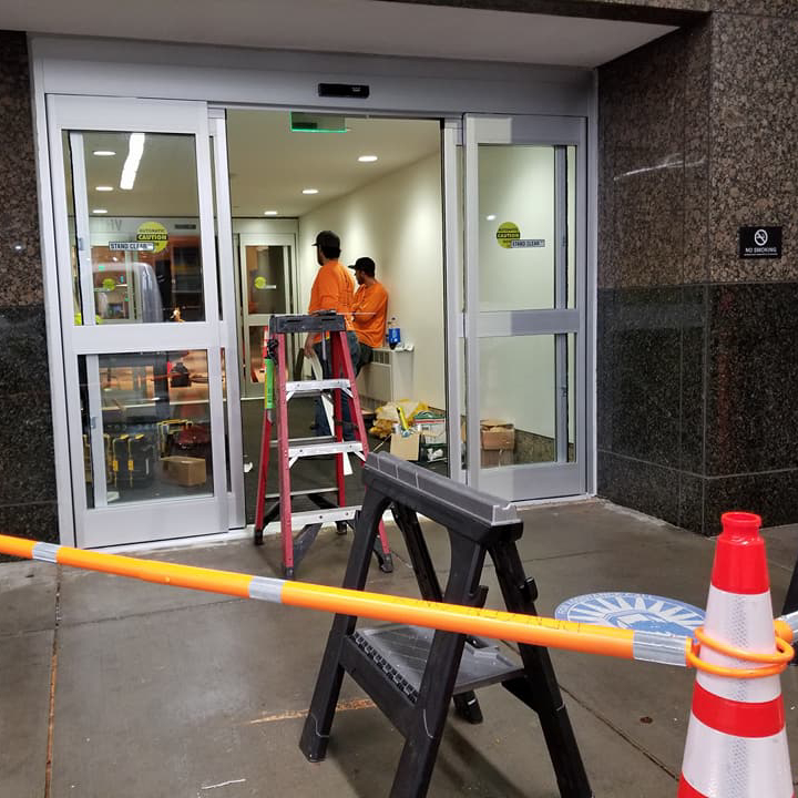 If your door closes too quickly, feels heavy, misaligns, has a faulty lock, or cracked glass, we can help. We offer services to replace closures, locks, and glass, and can upgrade your door’s locking systems and hardware.